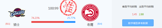 詹姆斯拿下准三双数据,无奈球队整体命中率仅3成,球队在季后赛中首次得分没有超过100,无奈的收下季后赛首场败绩。在今日,骑士取胜的平均欧赔为1.38,在这一低赔的前提下智能小炮通过计算给出的骑士胜率仅53.11%。