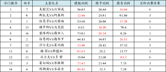 英超赛场中,莱切城、利物浦和南安普敦主场顺利赢球,伯恩茅次0-2不敌沃特福德爆出小冷,西布罗1-0小胜伯恩利,传统豪门阿森纳客场0:1不敌斯托克城,爆出4.21倍大冷。