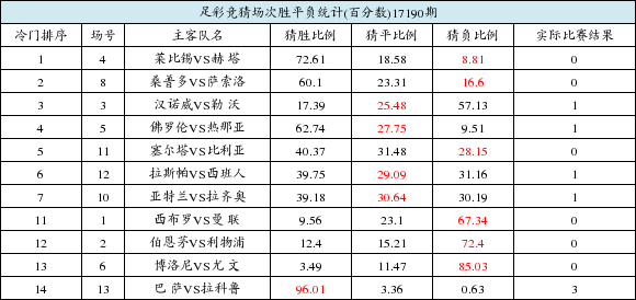 北京时间12月18日,胜负彩第17190期足彩开奖结果揭晓。
