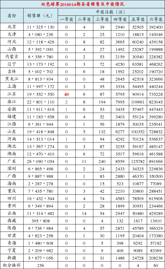 福彩双色球第16014期开奖,本期奖号:红球02 08 10 18 20 27;蓝球07。开奖揭晓:本期头奖井喷45注525万,江苏独揽40注头奖,浙江2注,安徽、河南、广西各1注。
