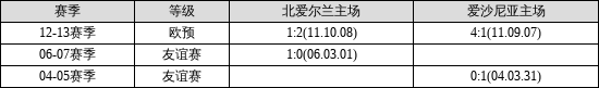北爱尔兰VS爱沙尼亚两队历史上交战过4场,北爱尔兰2胜平2负。在 欧预中两队交手2次,北爱尔兰0胜0平2负,进2球失6球,其中主场胜0场平0场负1场,进球1球失2球。
