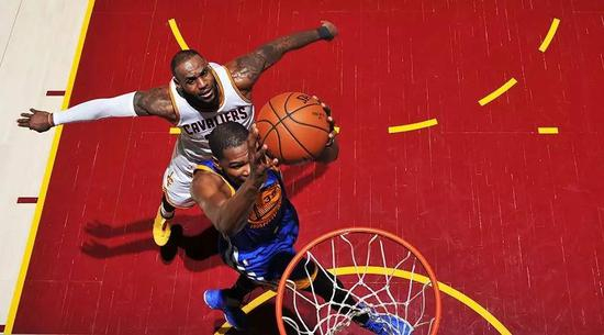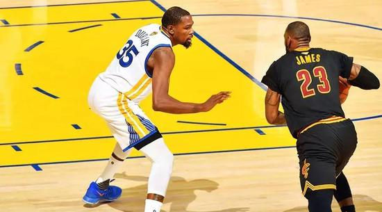 你当然可以说勇士队整体实力更强,有更多的兵力限制勒布朗,可凯文·杜兰特毫无疑问地确立了自己进攻端天下第一神兵的地位。