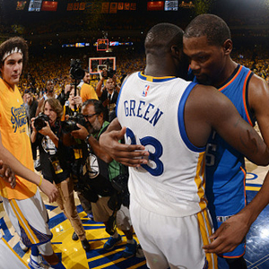 格林招募杜兰特已经有数月之久,但在这个最具戏剧性的时刻,也是他渴望最强烈的一次。“就在你输掉跟我们的抢七大战之后,”格林说道,“我看得出你很严肃。”当然,勇士没有那么需要杜兰特,他们在没有阿杜的情况下打出了73胜9负的战绩,但格林想确保万无一失。事实证明,杜兰特的想法是一样的。