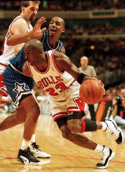乔丹在1994-95赛季中途复出,但公牛那个赛季最终倒在魔术脚下。也正因为此,当第二个赛季两队在东决相遇时,公牛感觉复仇的机会来了。他们很快取得3-0领先,并立志在奥兰多横扫晋级。结果,尽管沙奎尔-奥尼尔和便士哈达威分别拿下28分,但乔丹却23投16中砍下45分,率队以106-101挺进总决赛。