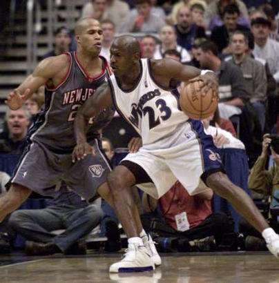 这是乔丹生涯最后一季。就在刚年满40周岁仅4天的时候,乔丹又奉献了一场唤起人们美好记忆的比赛。在主场对篮网的比赛中,他30投18中砍下43分10个篮板4次抢断3次助攻,率奇才获胜。而这也成为乔丹在NBA最后一场得分40+的比赛。