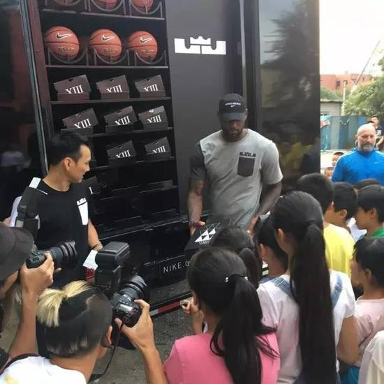 去年的詹姆斯中国行北京站,詹姆斯出现在公益机构“活力社区”的朱房中心,为活力社区所服务的流动儿童们带了大大的惊喜!詹姆斯为流动儿童带来了一卡车的礼物,其中包括衣服与球鞋,他向孩子们分享了自己的幼年的经历,并鼓励他们要追求梦想,老詹真是来到中国也不忘做慈善。