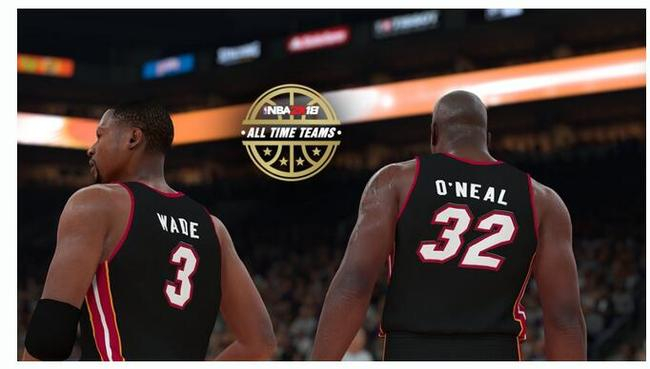 除了这张图片外,奥尼尔近日又在推特上晒出了他被2K18游戏选入热火队史最佳的图片,和他一起出现在图片中的是身穿热火3号球衣的德维恩-韦德。