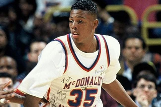 我小时候比较胖,也比较矮,但是在高三时,我瘦了下来,而且长到了1.8米以上。我开始有名了,大学球探开始看我的比赛,最终,我长到了1.98米,场均24.5分11.5篮板。我进入了1995年麦当劳全美最佳阵容和并成为1995年加州年度最佳球员。