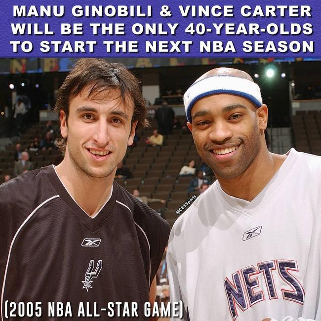 CBS体育还在照片上写下一行字来提醒大家,马努和卡特“将是下赛季仅有的2名40岁高龄的NBA球员”。