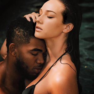 照片里的这对小情侣湿身紧贴对方,两人表情十分沉醉,闭目,平息凝神,唐斯贪婪的依靠在女友的胸部上,感受小女友的一切美好与柔软。他像一个孩子一样吮吸着这世间最清甜的东西,他呼吸着,他喘息着,他的每一口吸气,每一次亲吻,在Kawahine身上都留下了爱的印记。
