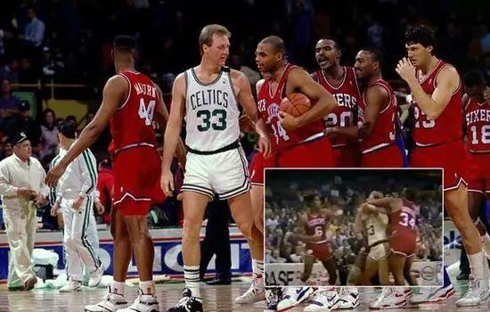 当时处在菜鸟赛季的巴克利名义上是负责拉架,实则是帮助J博士教训伯德。在J博士和伯德两位大佬纠缠在一起时,其他球员都只敢在一旁劝解,只有巴克利毫无畏惧冲了上去,他直接摁住了伯德两只手臂,J博士则顺势给了伯德腮帮两拳。就这样,巴克利凭借着给J博士当球场保镖而迅速走红,也让当时的球迷开始了解到巴克利的恶汉属性。
