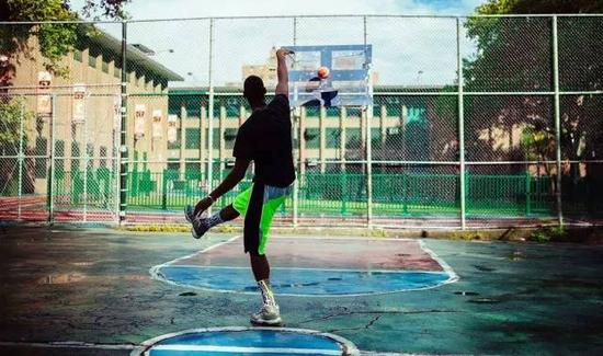 在阳气旺盛的篮球场上,