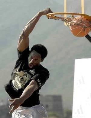 在这一年中国行与中国球迷的对抗互动中,科比还上演了挂框暴扣和三分绝杀的好戏。