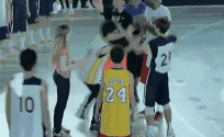 这一次科比亲自与球迷们同台竞技,玩起了三对三,给小球迷传授防守技巧,另外还秀了风车扣篮。