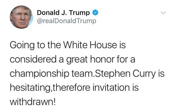 昨天,特朗普写推特说,既然库里犹豫不决,那么我们撤销对勇士造访白宫的邀请。随后,遭到很多人发推抨击,这其中也包括科比、詹姆斯、保罗等。