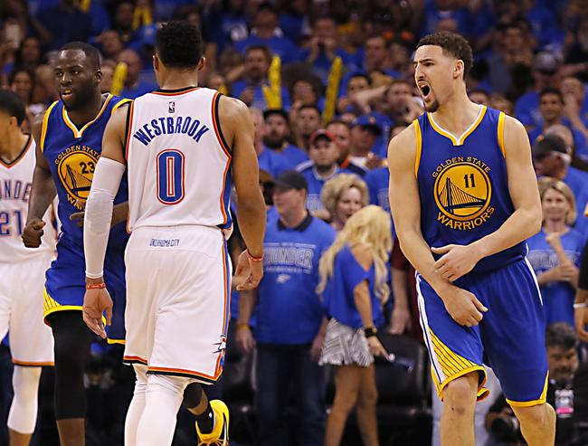 在即将奔赴俄克拉荷马的第六场比赛前,全队上下面色凝重,所有人都知道今夜就是生死战了。不出意料,比赛无比艰难,气势汹汹的雷霆不准备给勇士一点机会。在大厦将倾之际,是克莱-汤普森勇敢的站了出来。