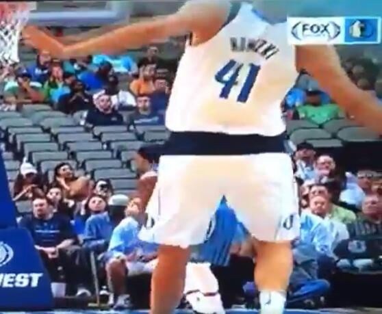 以至于网友在推特上晒出这段视频的同时还写道:“德克-诺维茨基在幽灵身上造犯规。”
