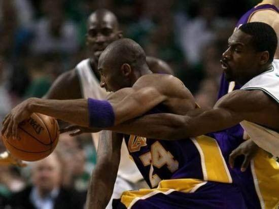 半年后,两人在总决赛相遇,阿伦并非主力,但在他出场的阶段里,还是给科比造成了不少麻烦。