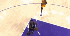接到球后,想从底线突破,被阿伦和小加索尔把球打掉: