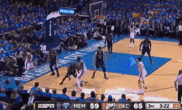绕了一圈,球还是给到了杜兰特,杜兰特再次被阿伦和小加索尔的包夹,被迫传球,造成失误: