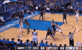 2014年,灰熊仅以西部第七的身份勉强杀进季后赛。首轮,他们面对的是如日中天的雷霆。而阿伦则要面对当季MVP杜兰特。