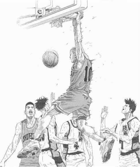 樱木最后的强硬补扣,锁定了胜局,而他8个前场篮板是他本场比赛唯一的亮点,因为他得分只拿了9分。最后时刻,抢下关键篮板,助攻三井反超比分,是最热血的地方。70比66,湘北赢了陵南,还记得当时高兴了多久吗?
