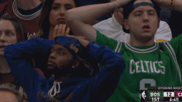 比赛中断,但现场依旧非常嘈杂,近两万球迷的叹息声此起彼伏。镜头扫过观众席,不仅是绿军球迷满脸痛苦,身穿酒红色骑士球衣的球迷们,同样脸色阴沉……