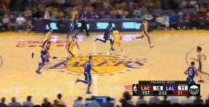 什么?敢对我们新船长不敬,我看你小子是活腻了吧!在一次湖人快攻长传的配合中,克拉克森接到队友传球想来个空中接力,没想到却被贝弗利一个巴掌扇飞。。。太狠了!
