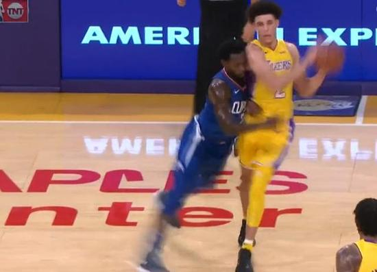 贝弗利也不恼,等着球哥鲍尔运球过半场就是一记冲撞!