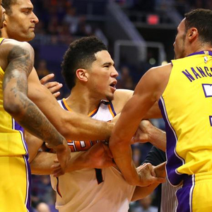 布克在比赛中与南斯发生冲突