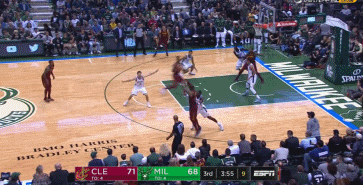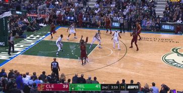 进入下半场之后,科沃尔延续着自己的火热手感,这一次他利用汤普森的掩护,接到詹姆斯从中路的击地传球,科沃尔空位三分空心入网,射穿雄鹿队不堪一击的防线。