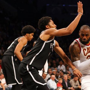 小托马斯和罗斯都因伤缺席,骑士闹起了控卫荒,詹姆斯不得不再次挑起控卫重担。比赛一开始,他就不断尝试给队友创造机会,可惜队友手感欠佳,他只好有更多的单打。随着科沃尔等人在第二节登场,詹姆斯屡屡给队友送出妙传,在他的组织下骑士的进攻慢慢复苏。詹姆斯的作用在第四节更是得到充分体现,他引领球队掀起反扑,一度夺回领先权,可惜他们没能顶住篮网的还击,还是遗憾落败。