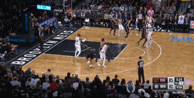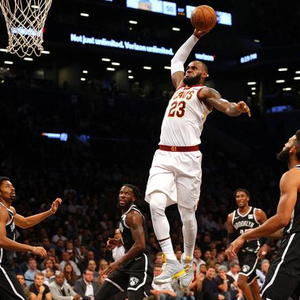 詹姆斯已经起步了,篮网篮下另外两位球员怕自己成为背景帝,停止了自己想要阻挡詹姆斯的脚步,默默站在原地看着詹姆斯完成了这一记爆扣。收球,起飞,舒展,一记战斧爆扣彻底点燃了全场球迷的情绪。