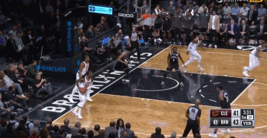 杰夫-格林在外线拿球,詹姆斯顺势空切篮下,格林心领神会,直接传球给到詹姆斯,詹姆斯拿球不和你多说话,直接原地起飞施虐篮筐,让身后的防守者尴尬不已。