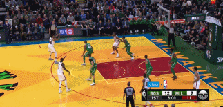 在首节比赛7分34秒,米德尔顿低位背打欧文,准备来一个背转身后仰跳投时,欧文高高跃起直接将对手的投篮一掌扇飞。随后米德尔顿眼疾手快争抢篮板,将球砸在了欧文身上出了边界。