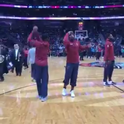 骑士球员赛前打招呼手势