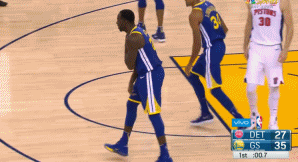 肩膀受伤,再加上勇士上半场进攻顺风顺水,“水花兄弟”手感正烫,于是格林在进攻端戏份锐减。全场,格林仅出手4次,到第三节9分56秒才开张,其他3次三分出手皆弹框而出。