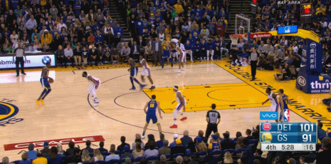 活塞队的雷吉-杰克逊随后带领球队发动反击,作为杜兰特前任队友,杰克逊连续几次个人单打,让勇士防守球员吃尽了苦头。进入第二节之后,杜兰特在4分25秒,个人持球单骑闯关,两步连续过掉两名防守球员,没等协防人做出反应,他一个滑翔劈扣将对手的防线击溃。