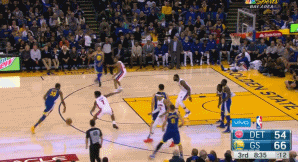 进入第四节之后,勇士队连续出现失误,被活塞队抓到反击机会。主队一度落后多达13分,让甲骨文球馆的观众看得都有些揪心。而且在一次约翰逊完成快攻上篮之后,杜兰特愤怒地将球直接拍到了空中。