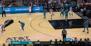 在比赛第四节,吉诺比利非常给面子地上演了一次突破劈扣:当时吉诺比利在中圈附近持球,看到凯尔-安德森提上掩护后,马上借助挡拆过掉了特雷沃恩-格拉汉姆,随后蛇形突破到内线,在弗兰克-卡明斯基头顶完成了一记单手劈扣。