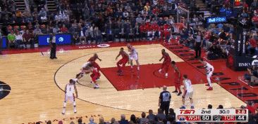 比尔在进攻端如入无人之境,无论是外线远投还是突破上篮,猛龙队防守球员都拿他毫无办法。这一次比尔在快攻中秀出娴熟的运球技巧,用身体倚开鲍威尔轻松将球打进。