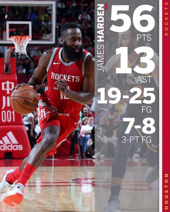 虽然没有完成对墨菲的超越成为火箭队史单场得分王,但是已经无懈可击,这是属于哈登生涯最完美的比赛。