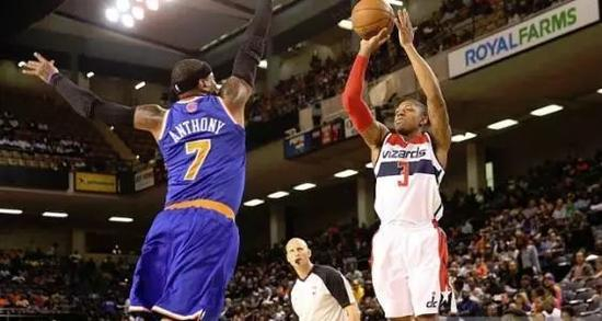 比尔身边是最吃球权的控卫之一沃尔。他也曾尝试跟沃尔争老大,但自主进攻能力受限,他很快就安于做沃尔身边的神射手。毕竟想跟一个场均助攻连续三年上双的控卫搭档后场,也是所有得分后卫可遇不可求的机会。
