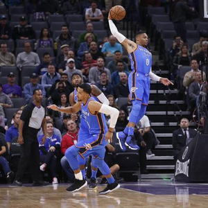 雷霆空有“三巨头”,面对国王的替补打得非常吃力,上半场以41-42落后。三节过后,雷霆以57-67落后两位数。