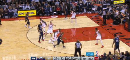 本场来到多伦多打客场,霍乐迪突然打通了任督二脉,手感爆棚,上半场就里突外投砍下24分。