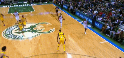第三节2分钟,字母哥再次欺负新秀库兹马,用身体倚开防守球员,在对方头上又是一记重扣。完全不给对手留任何情面,仿佛字母哥向对手宣告:要想拿最佳新秀,先过我这一关再说。