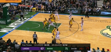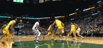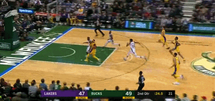 下半场比赛开始后,湖人小将英格拉姆不信邪,非要独自杀向字母哥镇守的篮筐。结果突破挑篮,被阿德托昆博直接扇飞,拒之筐外。随后布罗格登在快攻中,送给字母哥一个秒传,助攻后者完成空接暴扣,力拔山兮气盖世!