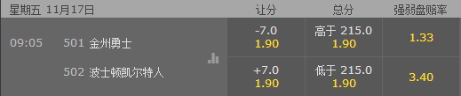 除了领跑东西部以外,两队的另外一项数据同样傲视群雄。勇士目前以场均119.6的得分,进攻火力冠绝联盟;凯尔特人凭借着严密的防守,场均94.5的失分排在东西部之首。这场最强矛盾之间的较量,大小分盘口开出了215分。强强对话若想取胜,防守策略显得至关重要,两队近10场较量仅有2场得分超过215分,相信明天的比赛又将会是一场小分。