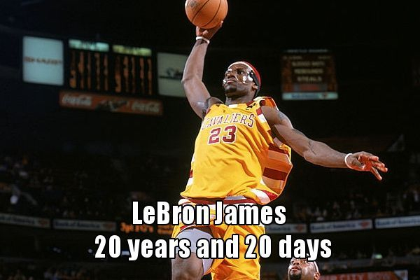 2。勒布朗-詹姆斯,20岁零20天
