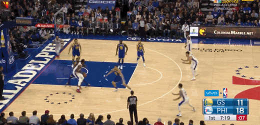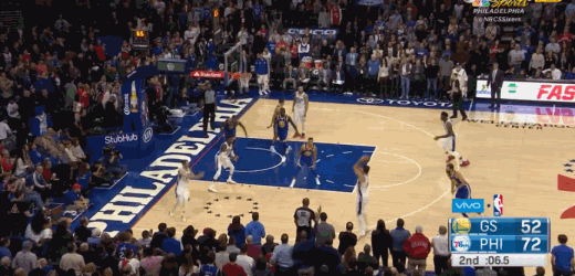 今天,年轻的76人开场气势极为惊人,面对卫冕冠军,他们以其人之道还治其人之身,进攻端不断提速坚决投篮,加上恩比德和西蒙斯二人的天赋,打得虎虎生风,第一节竟然疯狂轰下47分,半场结束时,竟然以74-52领先勇士22分!